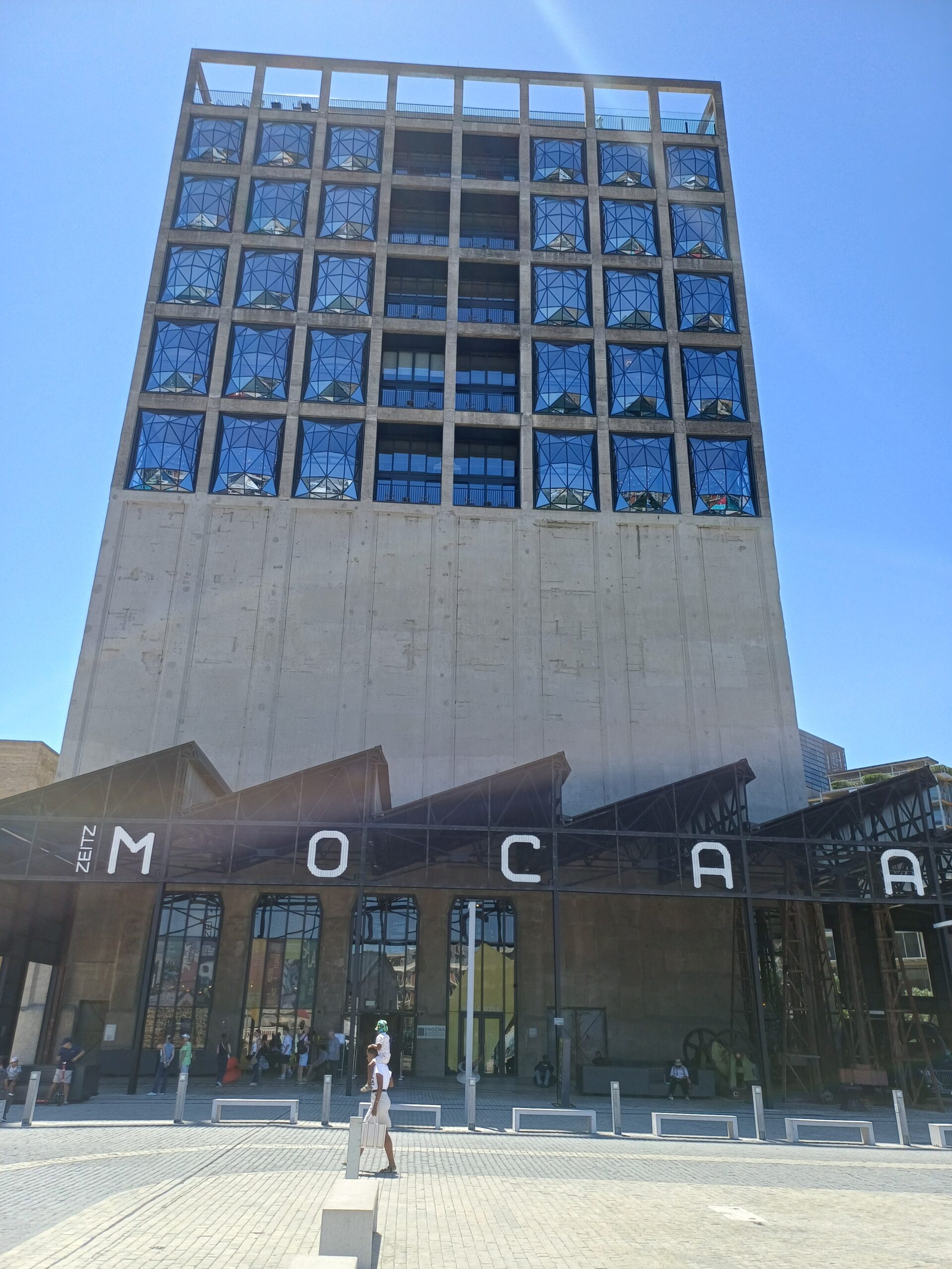 Our target for the day was the Zeitz MOCCA Art Museum. It started as a few old concrete silos and has been transformed into a spectacular gallery rising six stories. There’s even a posh hotel added to the museum going up another five stories.