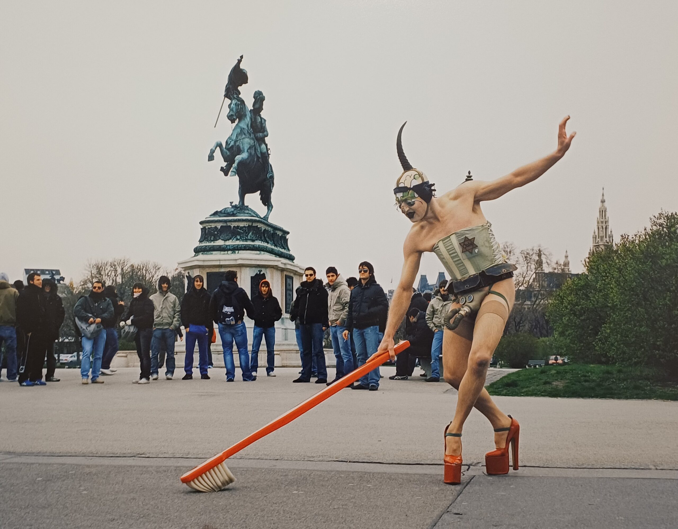 He has performed some highly controversial performance art and much of it has been to highlight the degradation of the Jewish people in WW2 and beyond. He has also focussed on the divide between rich and poor of his own country.